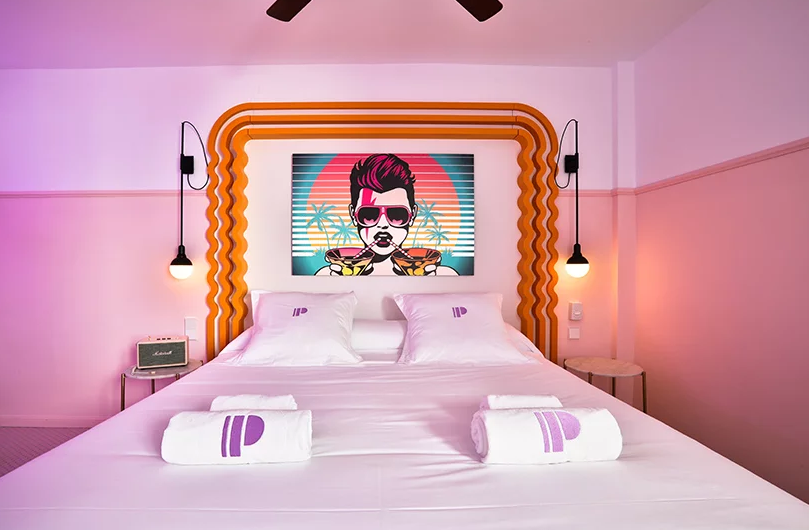 擁有霓虹色的paradiso ibiza藝術(shù)酒店位于邁阿密和孟菲斯之間。這是對(duì)酒店裝修的一種慶祝,它點(diǎn)綴著20世紀(jì)20年代的裝飾藝術(shù)風(fēng)格和20世紀(jì)80年代的孟菲斯風(fēng)格。這個(gè)度假勝地被恰如其分地命名為藝術(shù)酒店,它試圖通過其色彩設(shè)計(jì)讓游客沉浸在當(dāng)代藝術(shù)中。